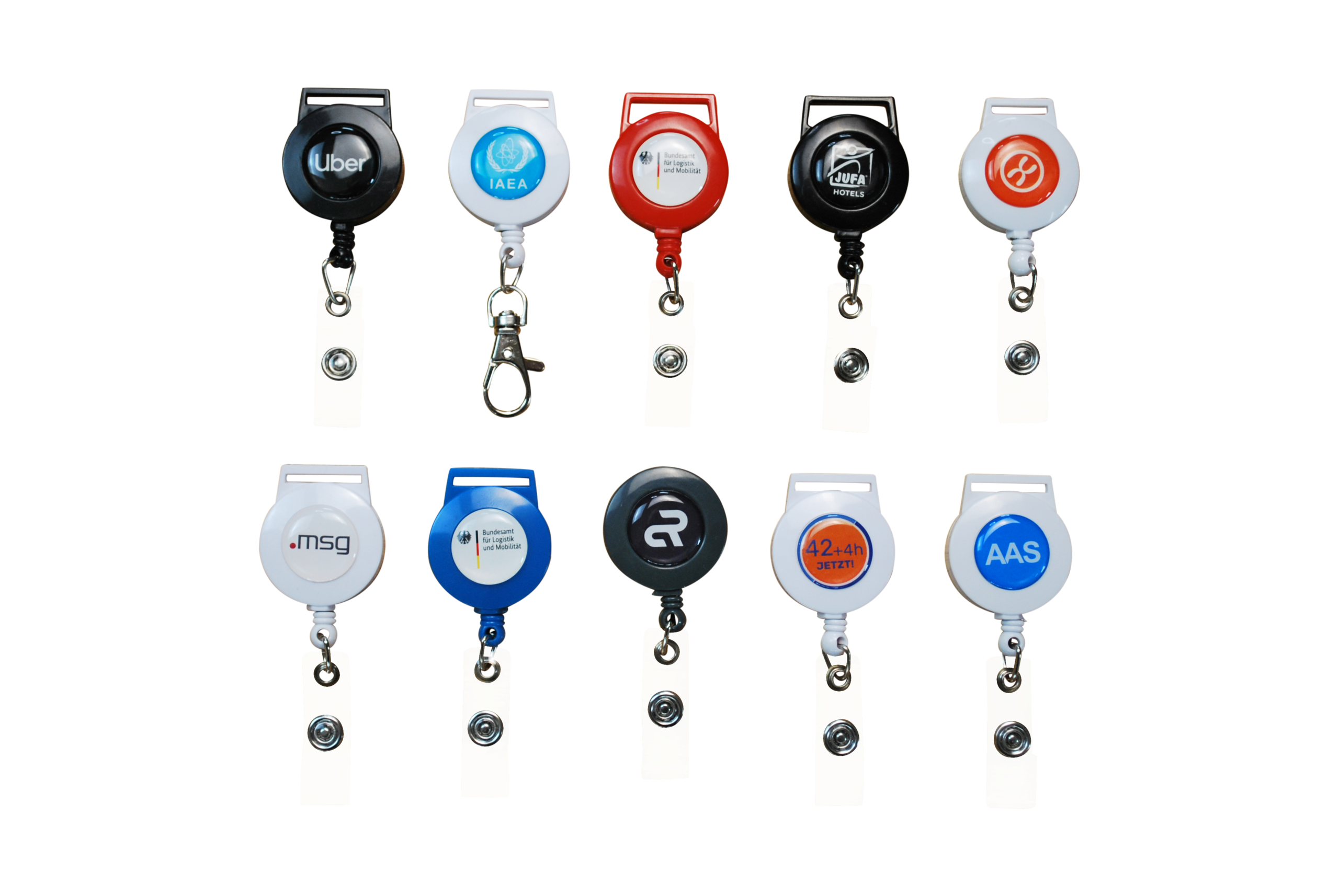 Neben den klassischen Lanyards, werden zunehmend Schlüsselbänder mit Mehrwert für den Kunden bzw. Mitarbeiter bestellt. Sei es ein Flaschenhalter bzw. -öffner, um den Transport bzw. das Öffnen von Flaschen zu erleichtern oder aber ein ausziehbares Badge Reel, um den Mitarbeitern ständigen Zugriff auf eine Karte zu ermöglichen.